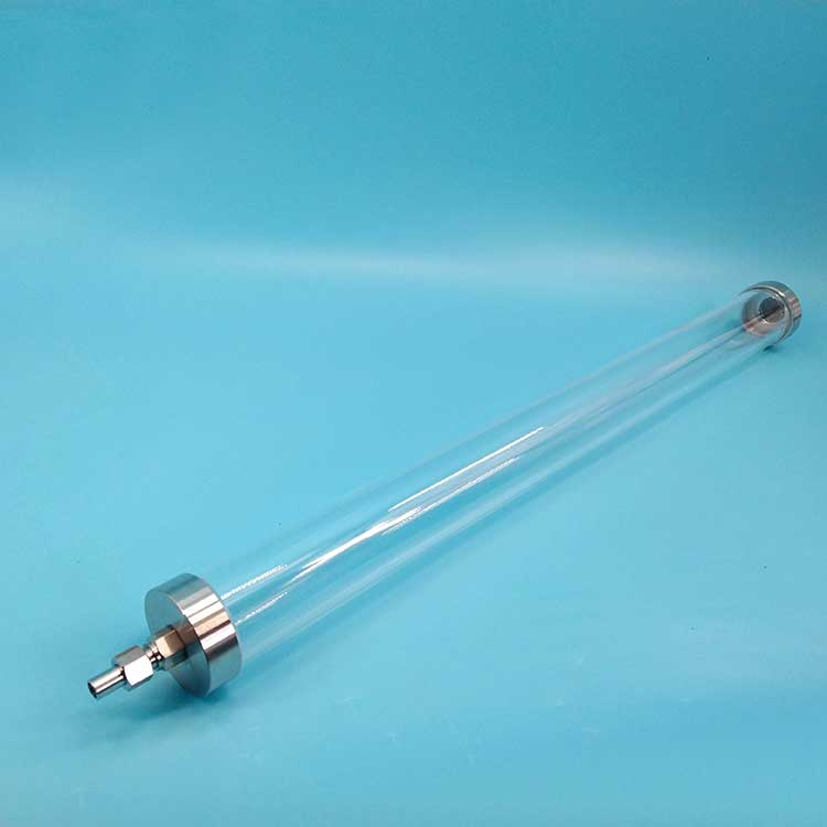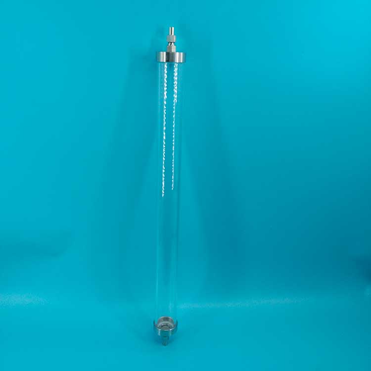 實驗室用交換柱: 一般用玻璃制造,柱長度和柱直徑之比(L/D)大約為10~30,柱上端一般裝塞子,下端是用燒結的玻璃砂板,也可以用玻璃毛、帶孔的瓷板、不銹鋼板,耐腐蝕的塑料網、布、玻璃布等作為離子交換柱的支座。