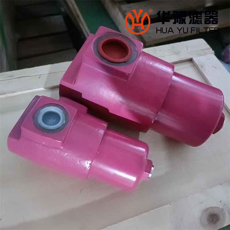 該過濾器的濾芯采用化纖過濾材質(zhì),具有過濾精度高,通油能力大,初始壓力損失小,納污量大等優(yōu)點(diǎn),并裝有壓差發(fā)訊器及旁通閥。當(dāng)濾芯堵塞到進(jìn)出油口壓差為0.35MPa時,便發(fā)出開關(guān)信號,此時應(yīng)更換濾芯。如果不能馬上停機(jī)或無人來更換濾芯,裝在濾芯上部的旁通閥會自動開啟,以保護(hù)系統(tǒng)。
