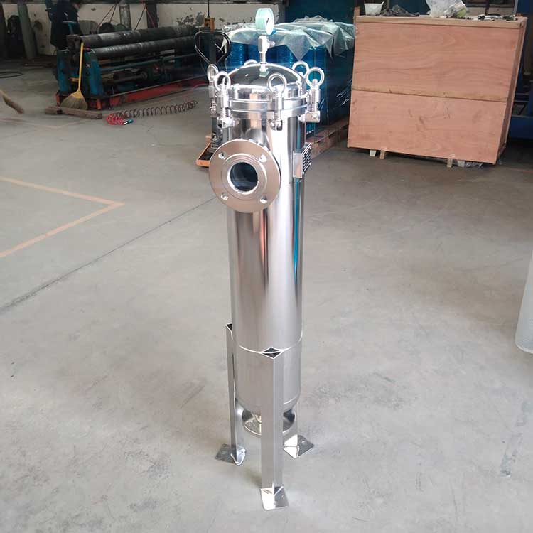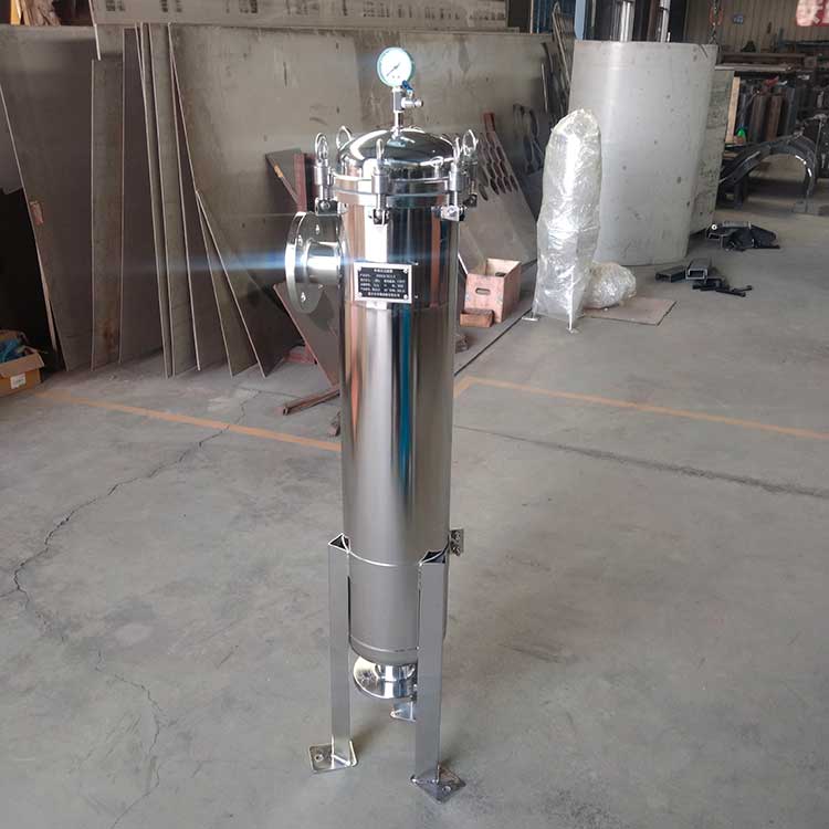 袋式過濾機是一種壓力式過濾裝置,主要有過濾筒體、過濾筒蓋和快開機構、不銹鋼濾袋加強網等主要部件組成,濾液由過濾機外殼的旁側入口管流入濾袋,濾袋本身是裝置在加強網籃內,液體滲透過所需要細度等級的濾袋即能獲得合格的濾液,雜質顆粒被濾袋攔截該機更換濾袋十分方便,過濾基本無物料消耗。袋式過濾器具備構造合理、密封性好、流通才能強、操作簡便等諸多長處。尤其是濾袋側漏機率小,能正確地保障過濾精度,并能快捷地改換濾袋,使得操作成本下降。濾器內外表面采取機械噴砂拋光解決,平均、易清洗。我們知道,袋式過濾器所采取的過濾方法是側進側出的方法,也可以采取側進底出的方法,通過管道中的壓力將過濾液體介質壓入或抽入袋式過濾器桶體,要過濾的液體介質經由電拋光沖孔支持濾藍承托的過濾袋的過濾,發生變化的固液分別到達液體介質被過濾的結果。