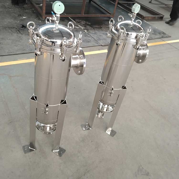 袋式過(guò)濾機(jī)是一種壓力式過(guò)濾裝置,主要有過(guò)濾筒體、過(guò)濾筒蓋和快開(kāi)機(jī)構(gòu)、不銹鋼濾袋加強(qiáng)網(wǎng)等主要部件組成,濾液由過(guò)濾機(jī)外殼的旁側(cè)入口管流入濾袋,濾袋本身是裝置在加強(qiáng)網(wǎng)籃內(nèi),液體滲透過(guò)所需要細(xì)度等級(jí)的濾袋即能獲得合格的濾液,雜質(zhì)顆粒被濾袋攔截該機(jī)更換濾袋十分方便,過(guò)濾基本無(wú)物料消耗。袋式過(guò)濾器具備構(gòu)造合理、密封性好、流通才能強(qiáng)、操作簡(jiǎn)便等諸多長(zhǎng)處。尤其是濾袋側(cè)漏機(jī)率小,能正確地保障過(guò)濾精度,并能快捷地改換濾袋,使得操作成本下降。濾器內(nèi)外表面采取機(jī)械噴砂拋光解決,平均、易清洗。我們知道,袋式過(guò)濾器所采取的過(guò)濾方法是側(cè)進(jìn)側(cè)出的方法,也可以采取側(cè)進(jìn)底出的方法,通過(guò)管道中的壓力將過(guò)濾液體介質(zhì)壓入或抽入袋式過(guò)濾器桶體,要過(guò)濾的液體介質(zhì)經(jīng)由電拋光沖孔支持濾藍(lán)承托的過(guò)濾袋的過(guò)濾,發(fā)生變化的固液分別到達(dá)液體介質(zhì)被過(guò)濾的結(jié)果。